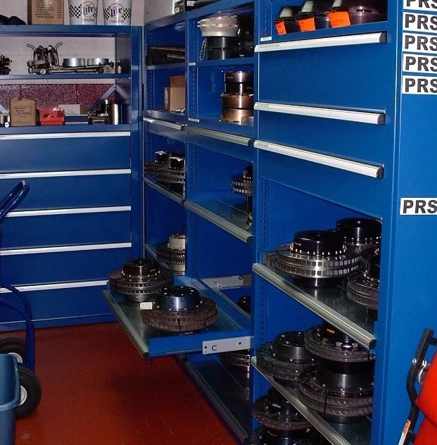 Storage walls can be configured to fit any space and store all parts, large and small. With standard weight capacities up to 440 pounds per shelf, drawer, or tray, our equipment is strong.